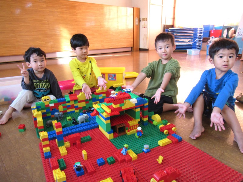 | ゙こうしたい゛という気持ちがでてきて、思い思いにブロックをつなげてあそんでいます。また、おともだちがしていることにも興味を持ち、あそびに誘ったり、2、3人で同じものを作ったりすることが増えてきました。゙ともだちと一緒に゙が嬉しいようです。やりとりをしながらあそぶ楽しさを十分に味わえるようにしていきたいです。 | ||