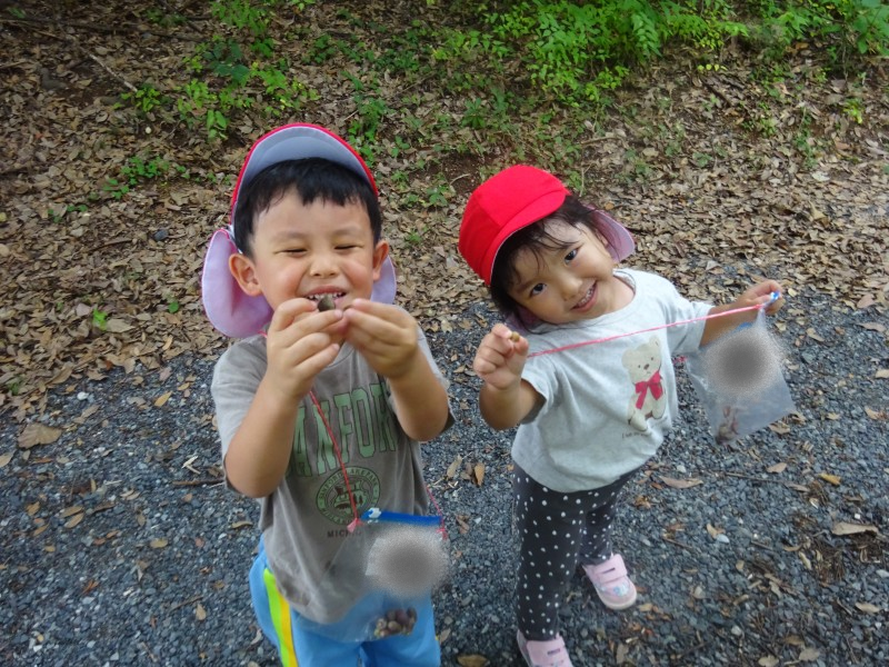 秋探しに志井川周辺に散歩に行きました。枯れ葉やドングリ、虫のこえなど発見がたくさんで目をキラキラとさせていました!お気に入りの物はお散歩バッグに入れて持ち帰り♪園に帰っても「たのしかったね」と友だちとお話ししていましたよ。 |