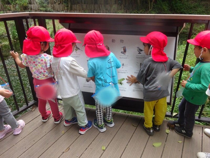 毎月、月刊誌を楽しみにしている子どもたち。今月は「だれがないているの?」といった秋の虫のお話でした。1ページずつ見ていくと…「あ、その声昨日聞いたよ。」「知っているなき方‼」等大興奮。その後は図鑑も広げてみんな興味津々に色々調べていました。運動会後は沢山秋探しができたらいいなぁ。 |