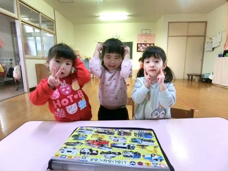 友だちとの関わりが深まり、「これで一緒にあそぼう」と誘いあって積み木や人形などの様々な玩具であそぶことを楽しんでいます。最近は“神経衰弱”がブームで「ここかな?」「そろったよ!」と楽しみながら順番を待ったり応援をしあったりしています♪ |